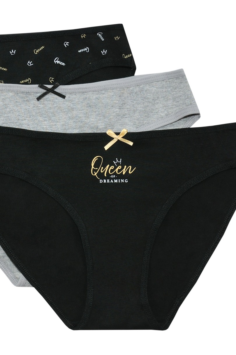 Figi damskie wykonane z wysokiej jakości bawełny. Skład 95% bawełna, 5% elastan. Opakowanie zawiera trzy sztuki.