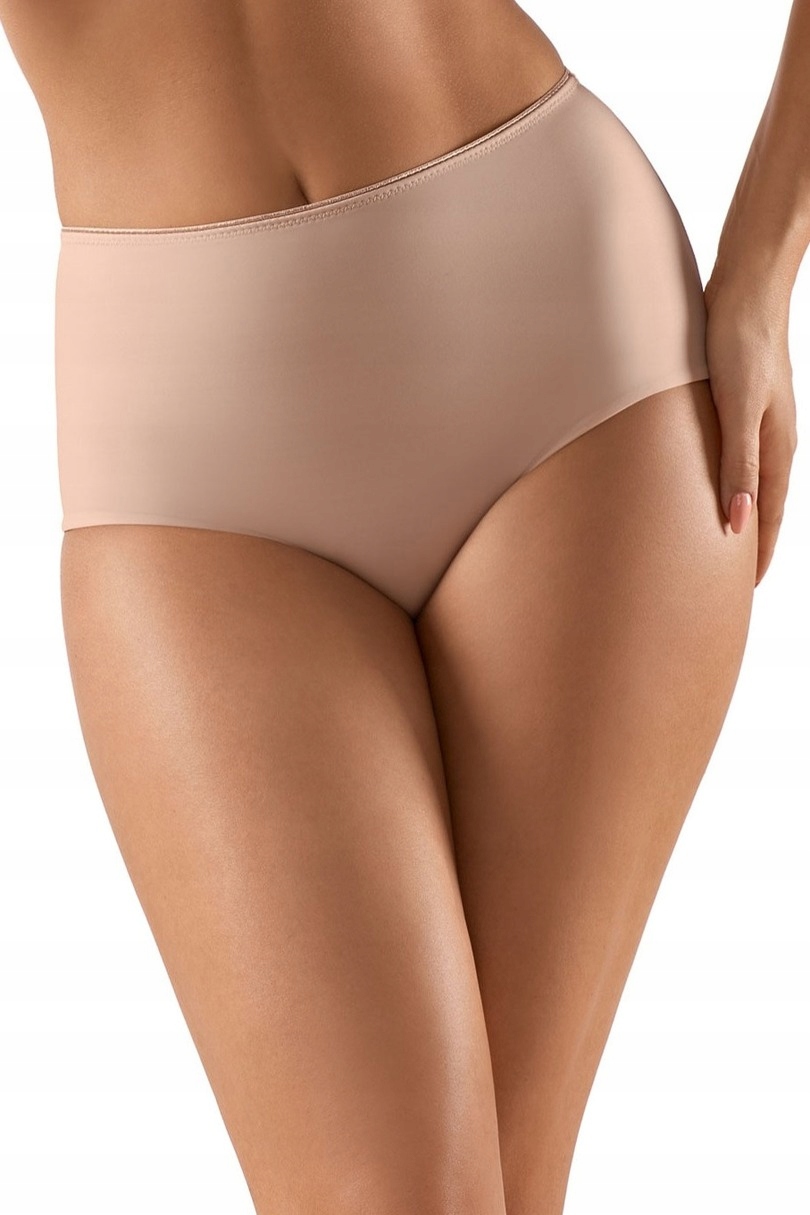 Gładkie, modelujące figi damskie. Z elastycznej dzianiny, przód podszyty dodatkową warstwą materiału dla jeszcze lepszego wysmuklenia. Szersze boczki, nogawki z przodu obszyte płaską gumką, z tyłu cięte laserowo.