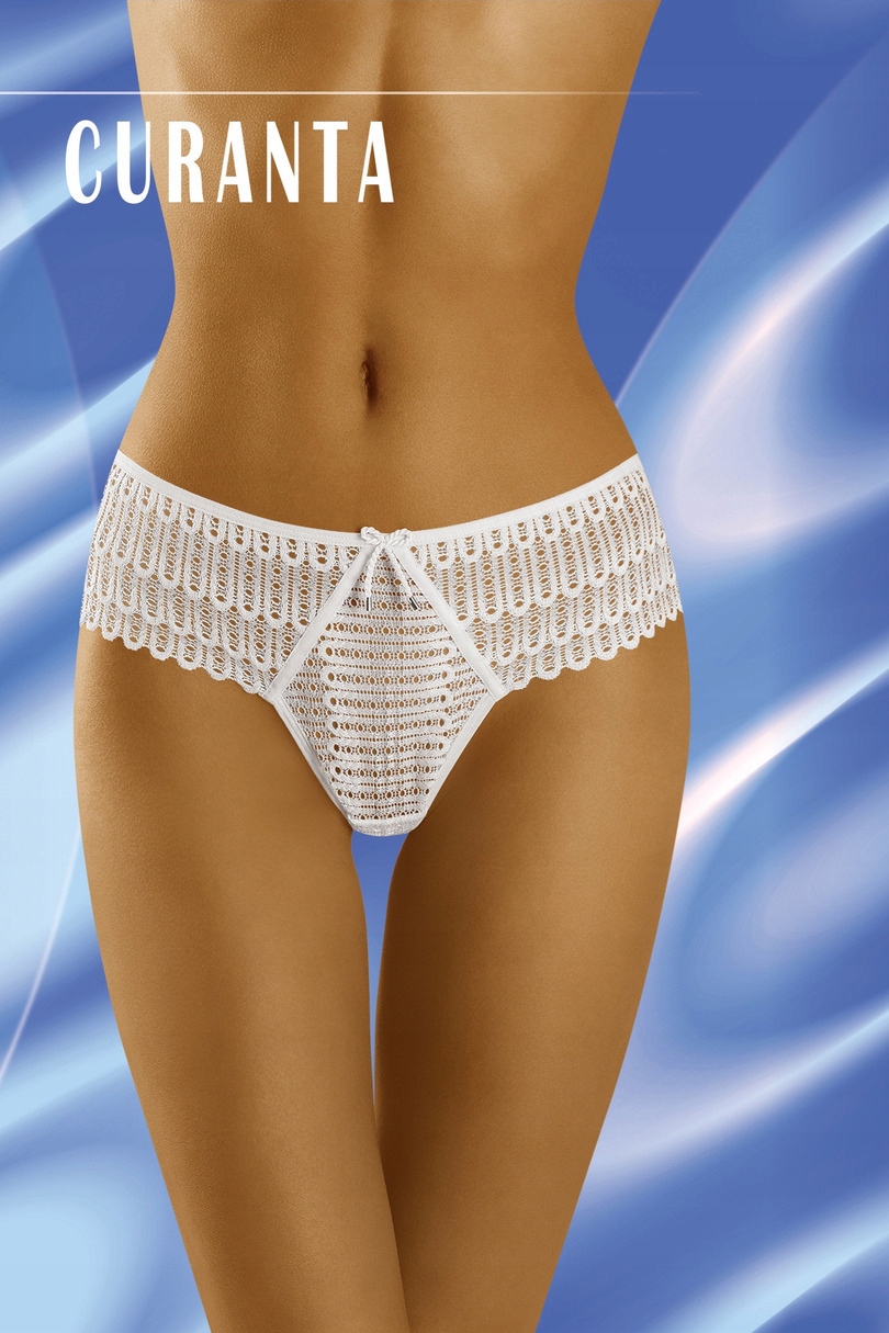 CURANTA-Bogato zdobione koronką szorto-stringi, uwodzicielskie i zalotne. Przykład bielizny podkreślającej urodę kobiecego ciała.