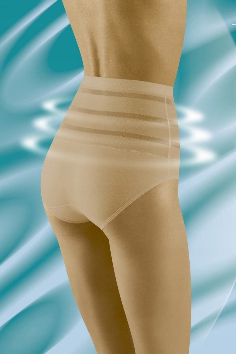 Wysokie figi damskie modelujące sylwetkę. Spłaszczają brzuch i podkreślają linię talii. W pasie wszyta guma z silikonem zapobiega rolowaniu i zsuwaniu się bielizny.