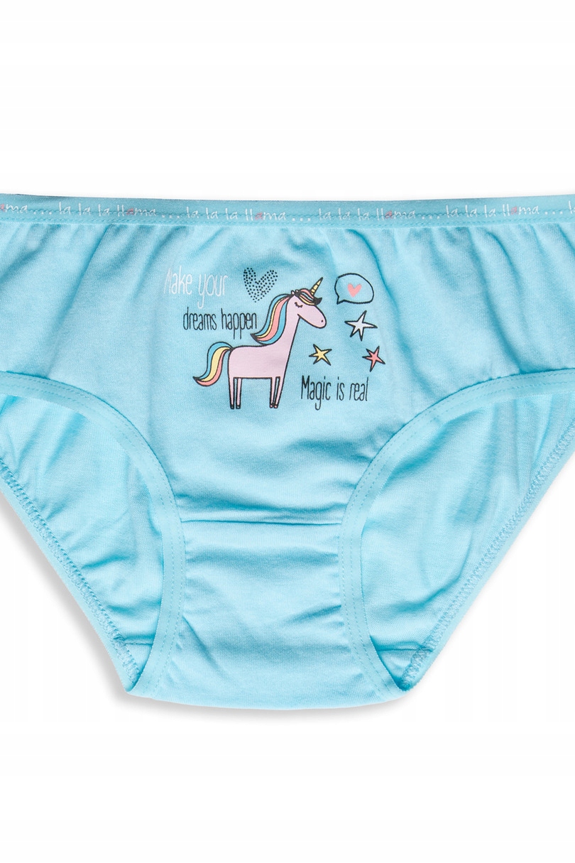 Figi dziewczęce bawełniane. W opakowaniu 3 sztuki w prezentowanych kolorach. Skład: 100% Bawełna.