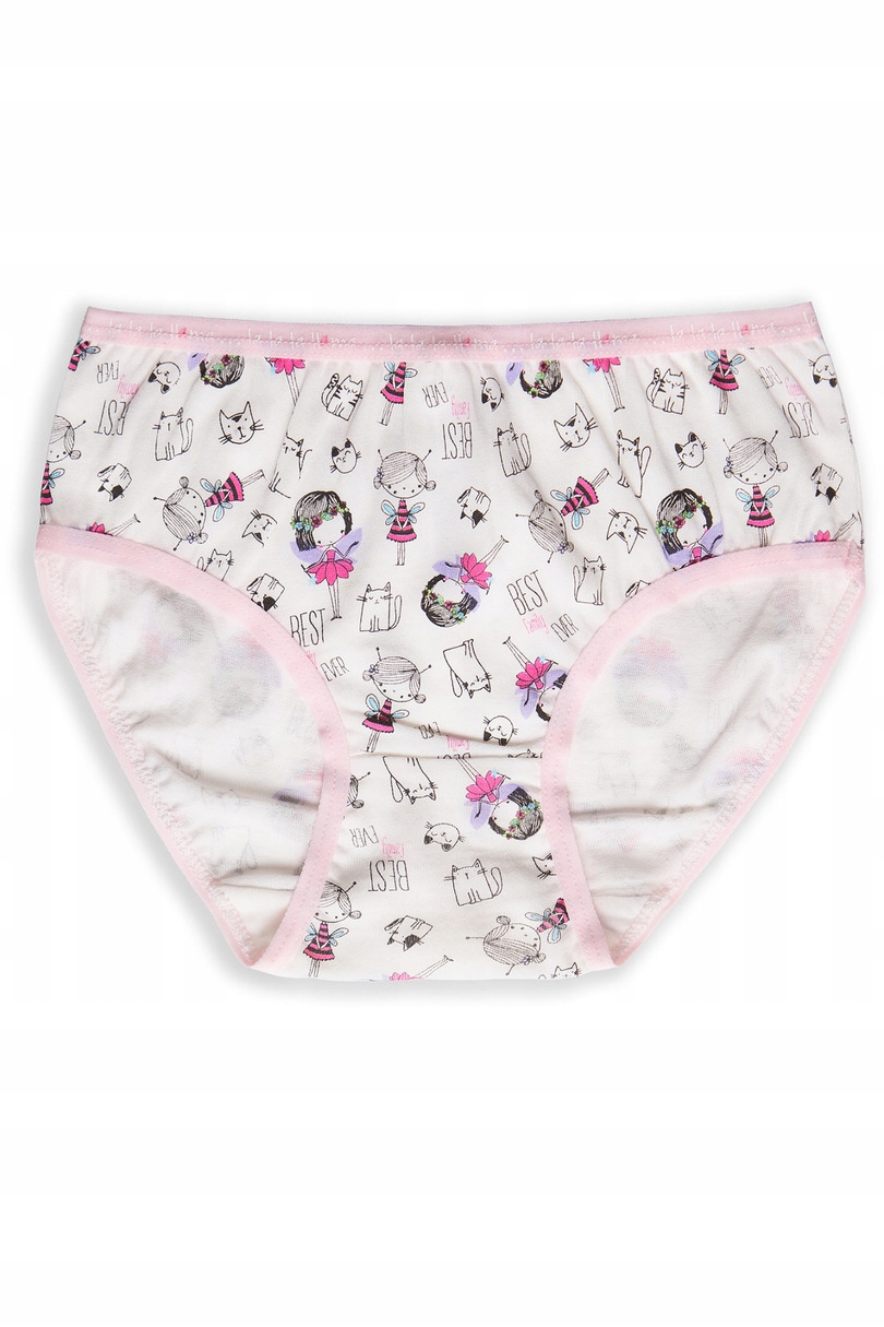 Figi dziewczęce bawełniane. W opakowaniu 3 sztuki w prezentowanych kolorach. Skład:95% Bawełna, 5% Elastan.