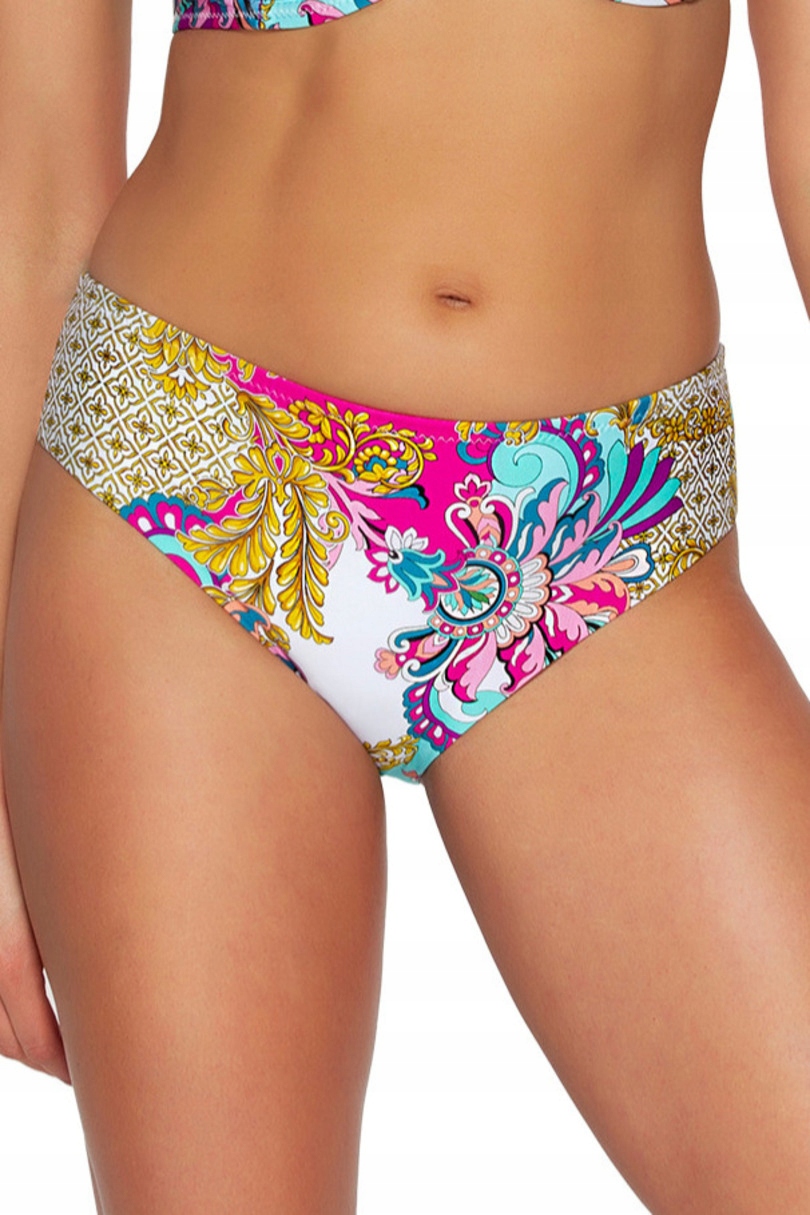 Klasyczne figi SK 172/11 to idealne połączenie wygody i elegancji w wyjątkowej, barwnej odsłonie. Dzięki płaskiemu wykończeniu z tyłu doskonale dopasowują się do sylwetki, nie odznaczając się pod ubraniem. Kolorowy, bogaty wzór w stylu orientalnym, z nutą różu, turkusu i złota, dodaje im egzotycznego charakteru. Gładki fason i klasyczny krój sprawiają, że figi te są idealnym wyborem na plażę i do letnich stylizacji. Stwórz pełen wdzięku komplet z biustonoszem SK 172 i poczuj się stylowo oraz komfortowo podczas wakacji.