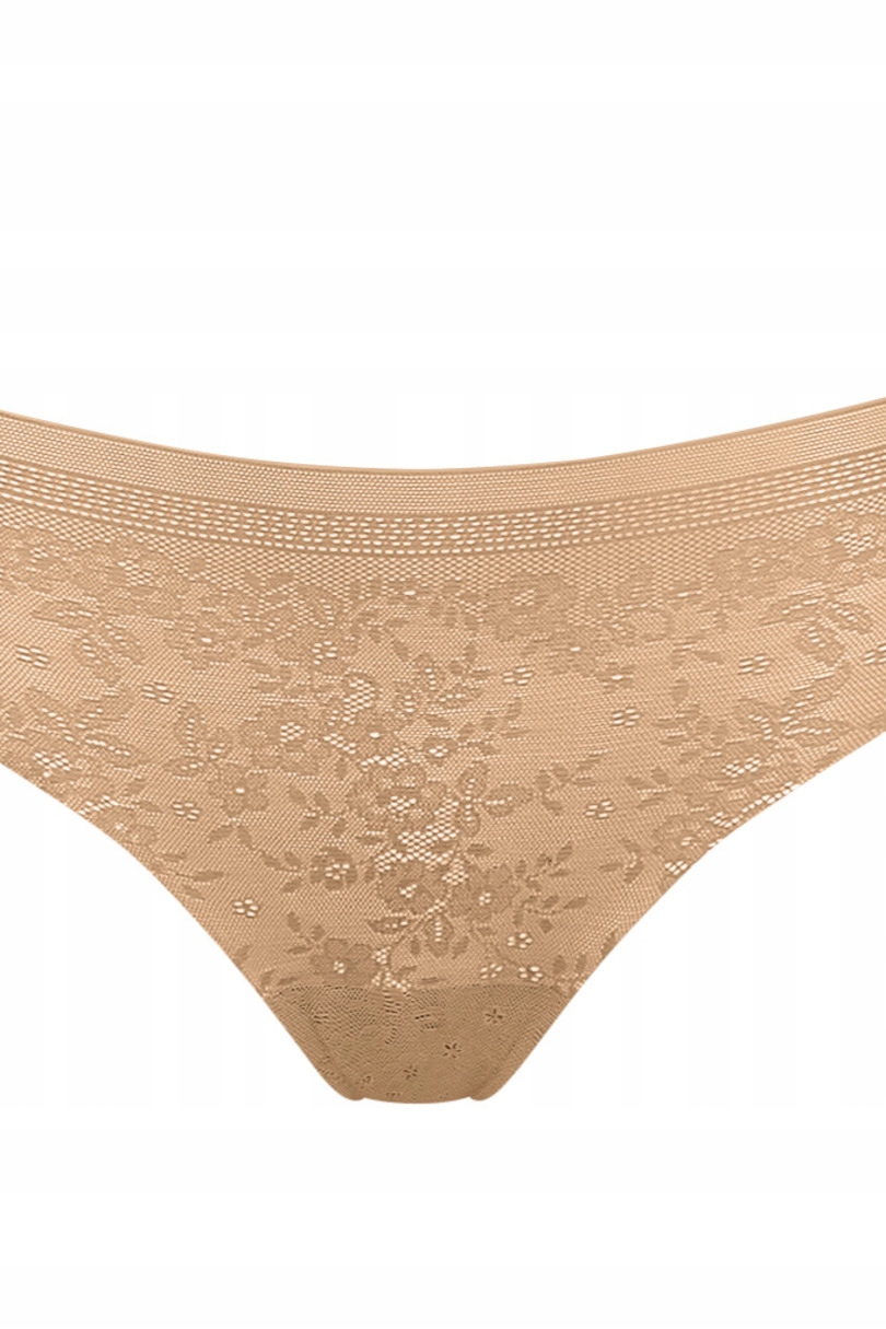 - Model wykonany z miękkiej, delikatnej i płaskiej koronki o motywie kwiatowym, która nie odznacza się pod dopasowanym ubraniem.