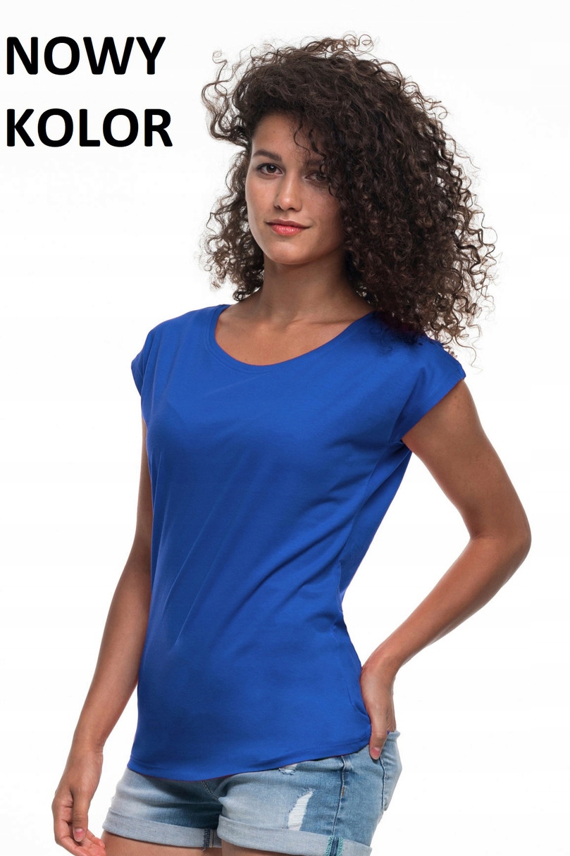 T-shirt damski bawełniany. Opis produktu: dzianina single jersey; bawełniany ściągacz; boczne szwy; podwójne szwy. Gramatura: 150 g/m2. Skład: 100% bawełny ring-spun, kolor 34: 90% bawełna, 10% wiskoza.