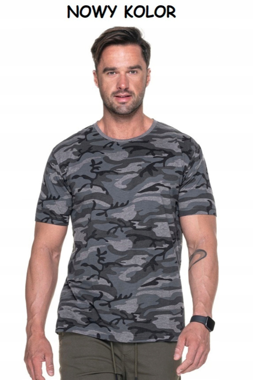 Koszulka moro męska. Miękki i gładki materiał single jersey z nadrukowanym wzorem moro. Dekolt wykończony elastycznym ściągaczem, taśma wzmacniająca na ramionach, podwójne szwy. Gramatura: 170g/m2. Skład: 100% bawełna półczesana.