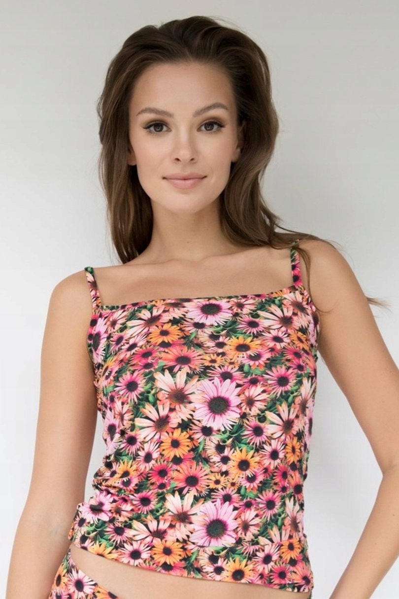 Energetyczny, letni wygląd dodaje ogromnej ilości energii oraz radości. Koszulka zachwyca okrągłym dekoltem na cienkich, regulowanych ramiączkach. Model został uszyty z elastycznej dzianiny o chłodnym chwycie i wykończony w technologii płaskich krawędzi JULIMEX INVISIBLE LINE®. Ramiączka i pachy są przeszyte klasycznym ściegiem. Koszulkę można nosić jako bieliznę lub lekki, samodzielny top. Koszulka dostępna jest w rozmiarach S-XL. Skład: 89%POLIAMID, 10%ELASTAN, 1%BAWEŁNA.
