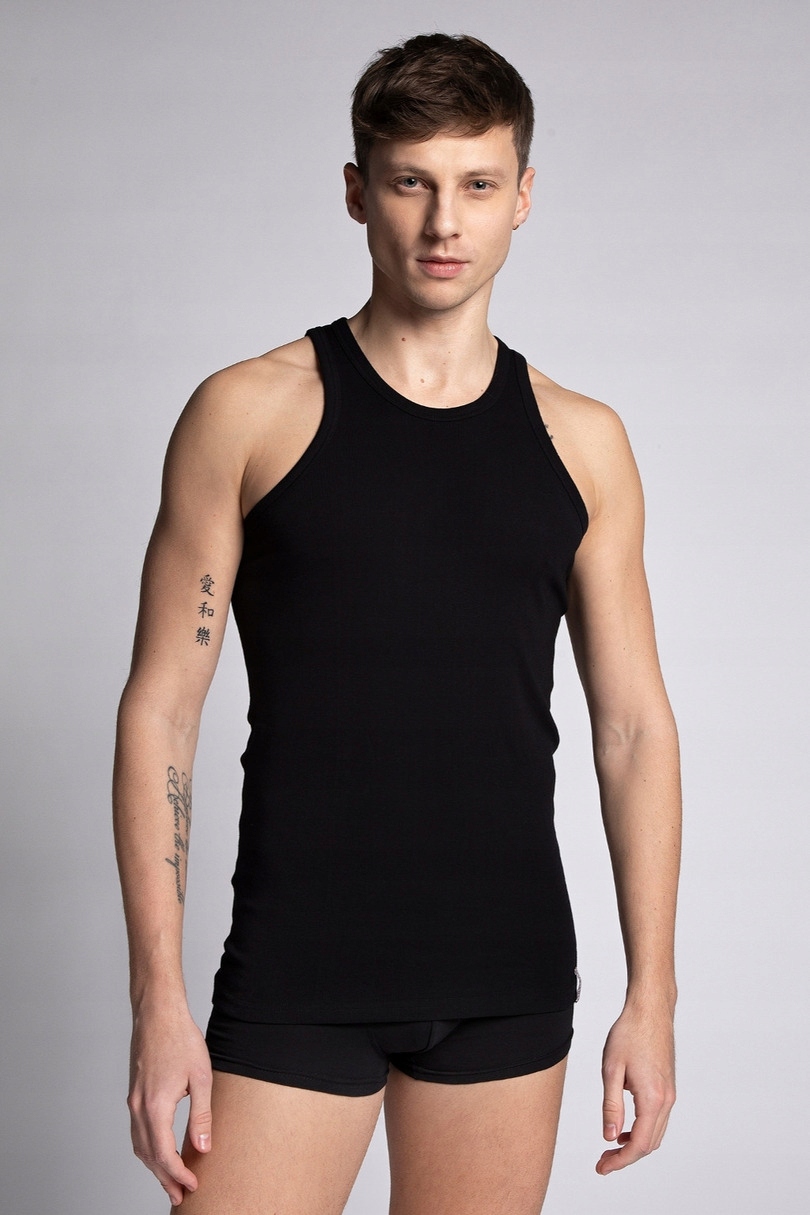 Klasyczna podkoszulka męska, 100% bawełna prążkowana, wąskie ramiączka. Idealny wybór. Opakowanie zawiera jedną sztukę produktu. Skład materiału: 100% bawełna.