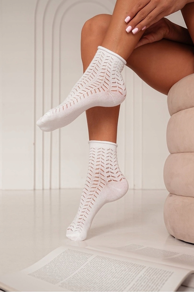 Bawełniane skarpety ażurowe dla osób ceniących wygodę. Doskonale sprawdzą się w codziennych stylizacjach.