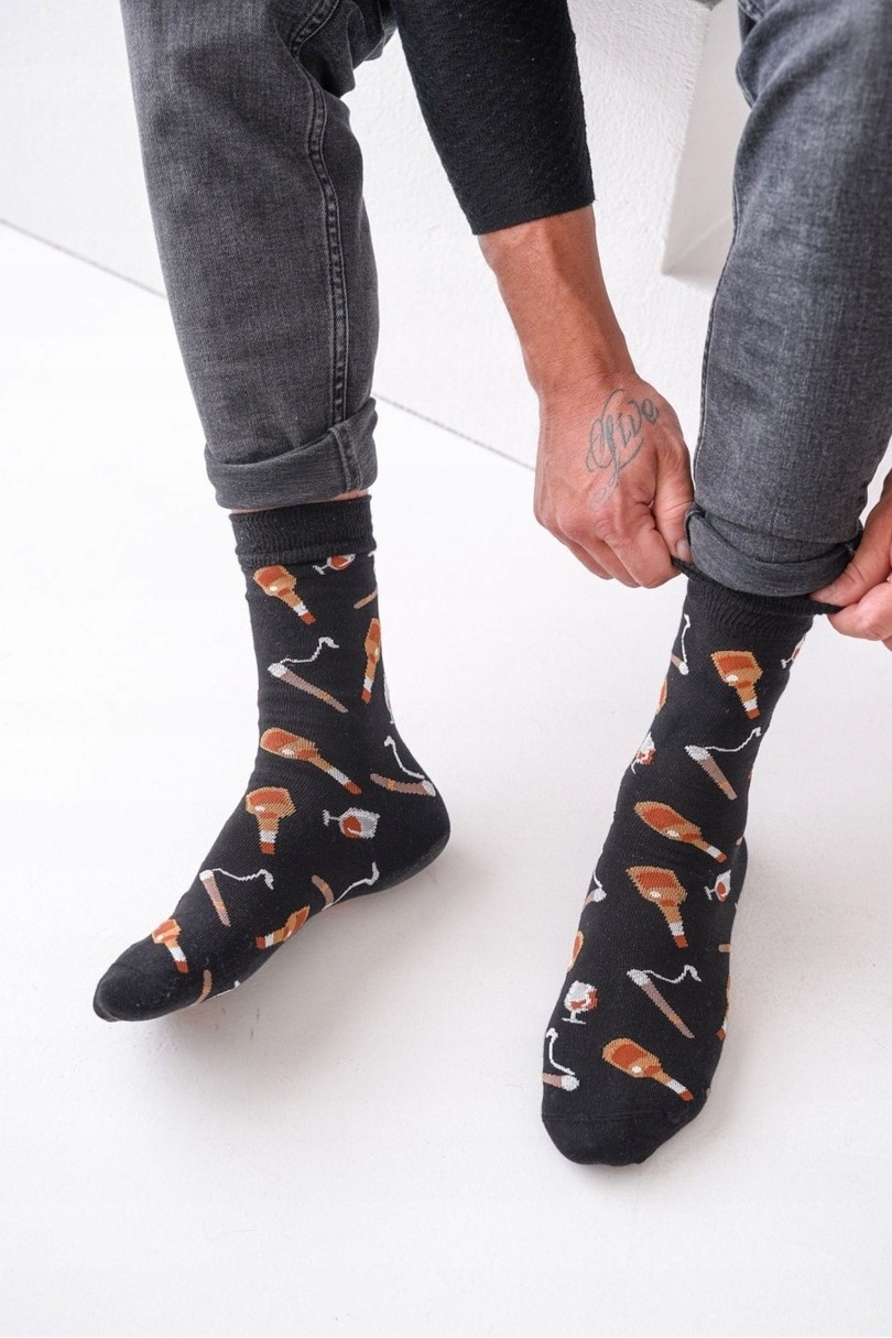 Unikalny wzór nawiązuje do świata wyrafinowanych przyjemności – whisky i cygar – co czyni je idealnym dodatkiem do eleganckiej stylizacji lub doskonałym prezentem dla konesera dobrego smaku.