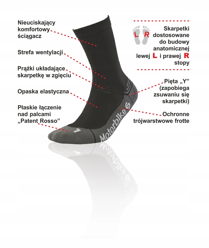 Motorbike Deodorant Silver- wyjątkowe skarpetki motocyklowe. Skład surowcowy: PROLEN® Siltex ze srebrem 77%, poliamid 20%, LYCRA® 3%