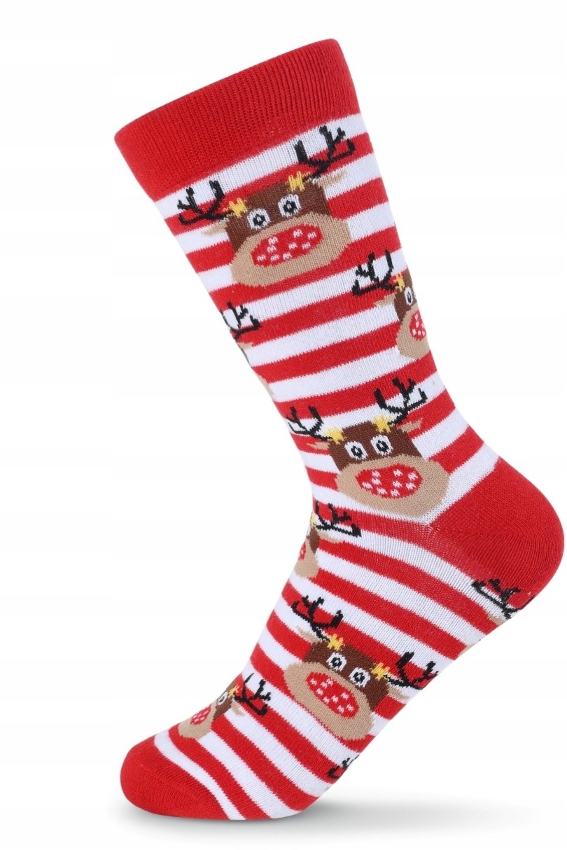 Wzorowane skarpetki wykonane z bawełny z różnorakimi świątecznymi motywami. Komfort noszenia zapewnia wyprofilowana pięta i płaskie szwy.