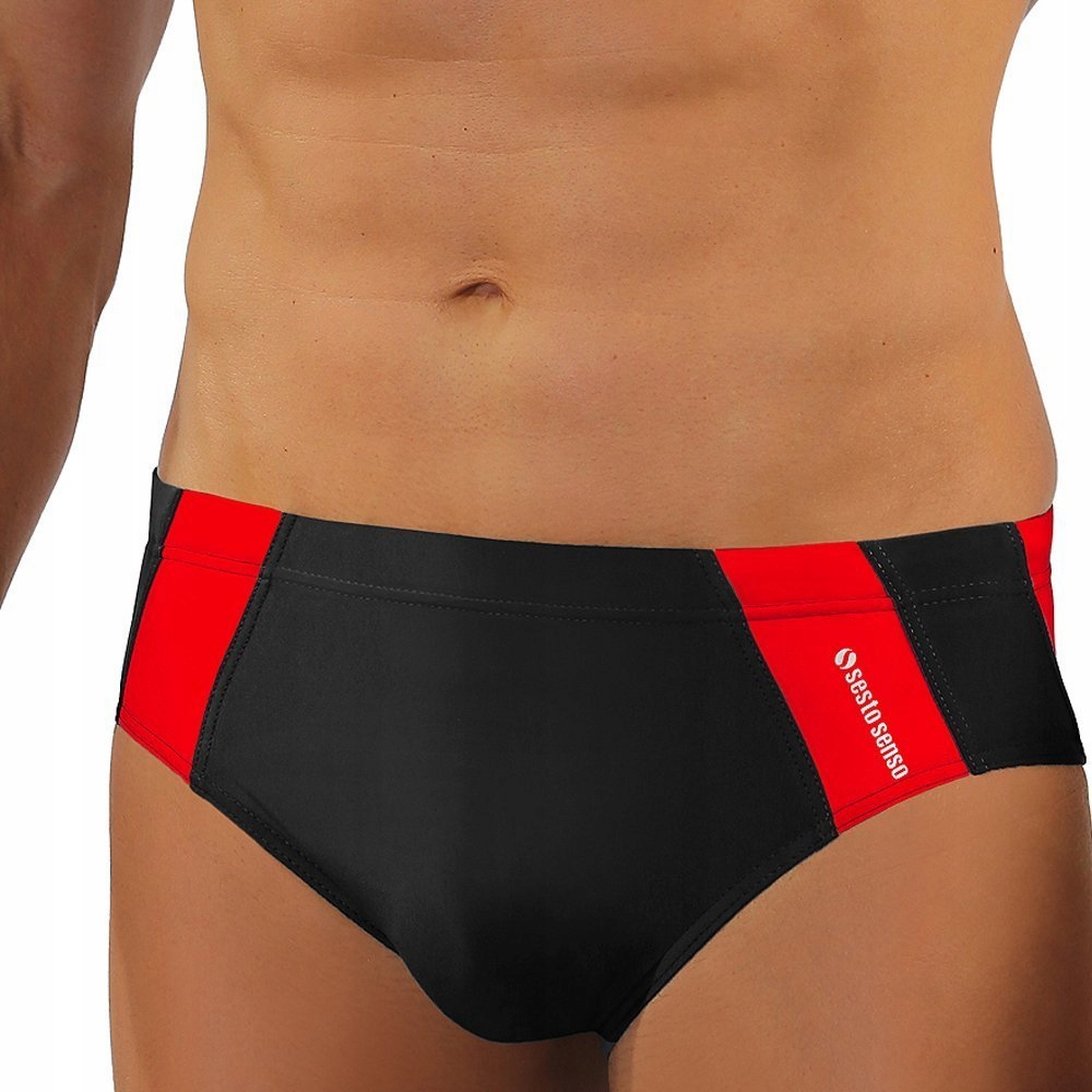 Slipy kąpielowe Sesto Senso są wygodne i niezwykle praktyczne. Przylegają do ciała i szybko schną – doskonałe na basen jak i na plażę. Dostępne w trzech kolorach z pasami w kontrastujących kolorach.