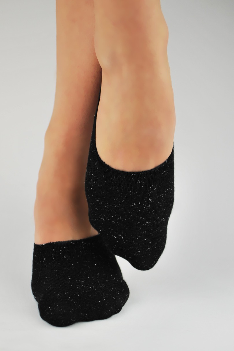 Stopki damskie balerinki, bawełniane z lurexem. Skład surowcowy: 79% bawełna, 16% poliamid, 4% przędza metalizowana.