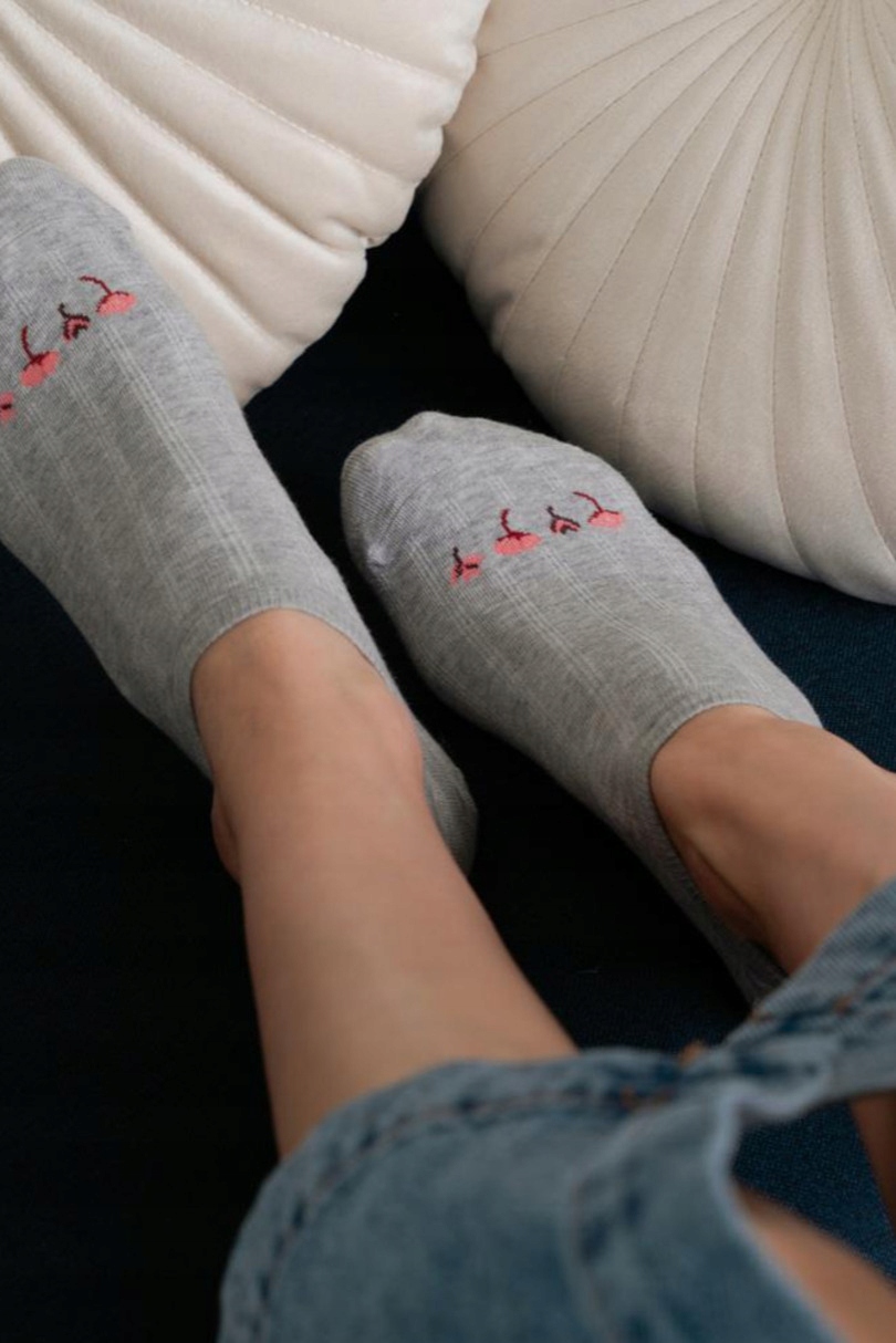 Stopki wzorowane damskie, doskonałe do mokasynek. Wykonane z wysokiej jakości bawełny z dodatkiem włókien elastycznych. Wygodny nieuciskający ściągacz.