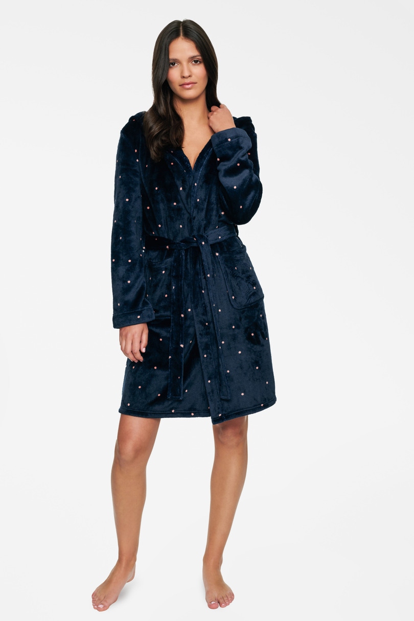 Ultra miękki i przyjemny w dotyku szlafrok z kapturem wiązany w pasie.