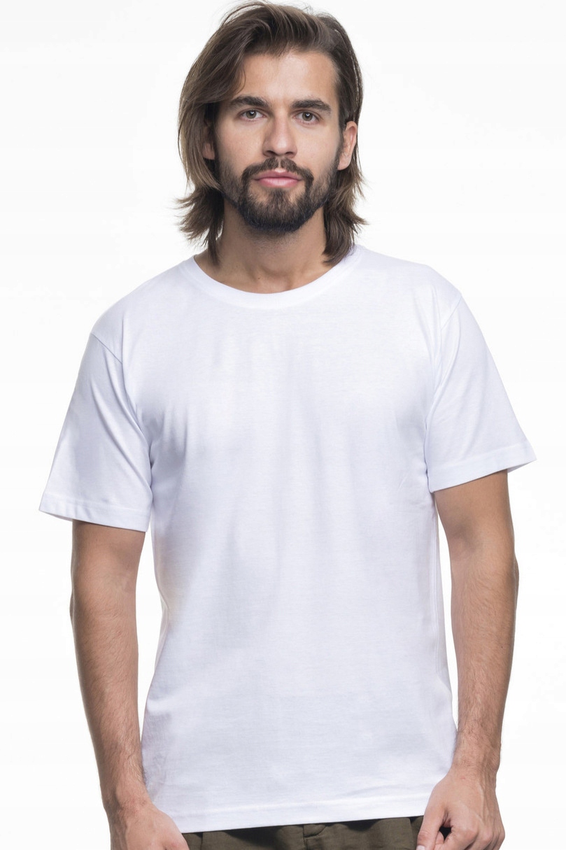 T-shirt męski z krótkim rękawem wykonany z dzianiny single jersey;klasyczny fason; materiał poddany praniu enzymatycznemu, dzięki czemu jest pozbawiony nierówności; wykończenie silikonowe materiału powodujące że jest miękki i miły w dotyku; dekolt wykończony dwuwarstwowym ściągaczem z elastanem zapewniającym dłuższą trwałość; kark i ramiona z taśmą wzmacniającą i stabilizującą, która pozytywnie wpływa na trwałość szwów; boki bezszwowe zapewniające lepszy komfort w noszeniu i dające większe możliwości nadruku; podwójne gęste szwy do których wykorzystano nici najwyższej jakości